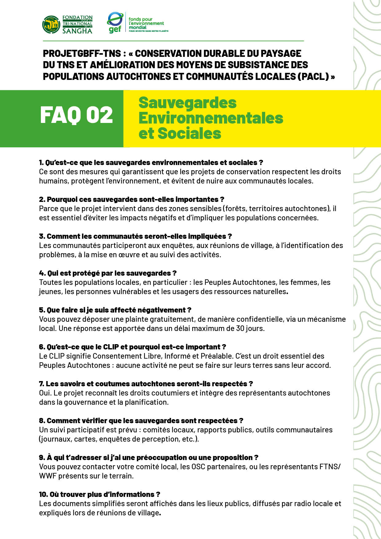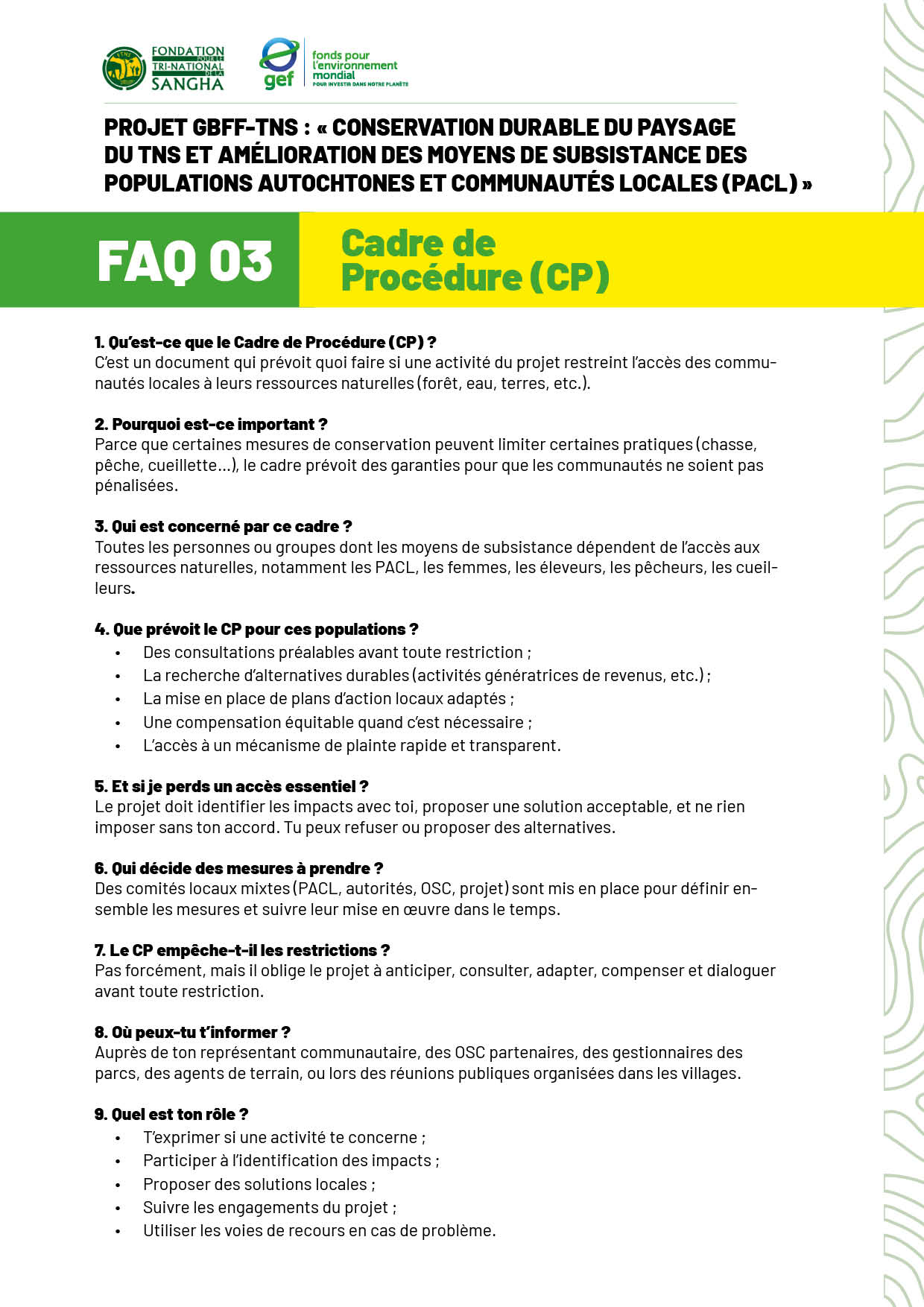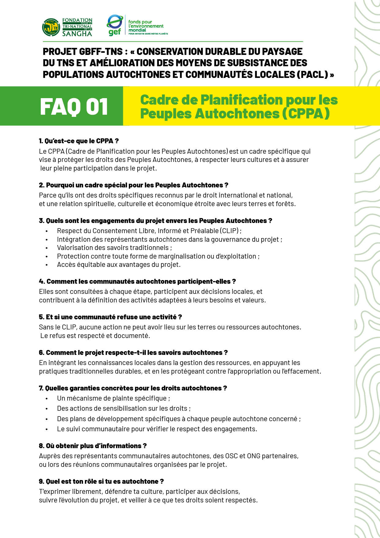 FAQ 1 Cadre de Planification pour les Peuples Autochtones (CPPA)